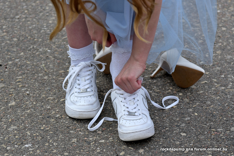 После торжественного выхода из школы и прохода по дорожке все быстренько переобулись в кеды и кроссовки. И вальс с мальчиками танцевали уже в них. К дискотеке в школьной столовой переобулись уже все. Кое-кто даже переодеться успел)))