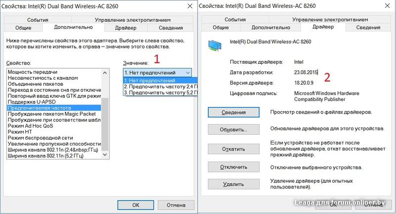 Еще скажу одну вещь: у меня в винде почему-то целых 2 разных драйвера с версией 18.20.0.9, один работает нормально, второй глючит и нет раздачи интернета. Попробуйте в диспетчере устройств Wifi 8260 -> Обновить драйвер -> Поиск на компьютере -> Выбрать из списка (кнопка ниже) -> Перебрать все драйвера (может сбиваться нумерация).