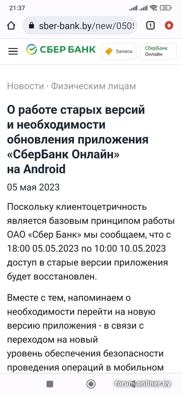 Я вам расскажу как сбер отправляет людей на левые клон сайты,приложения. пишет обновите приложение или не зайдёте. начинаешь гуглить где его скачать,в маркете его нет,по запросу сбер беларусь скидывает на вирусные приложения