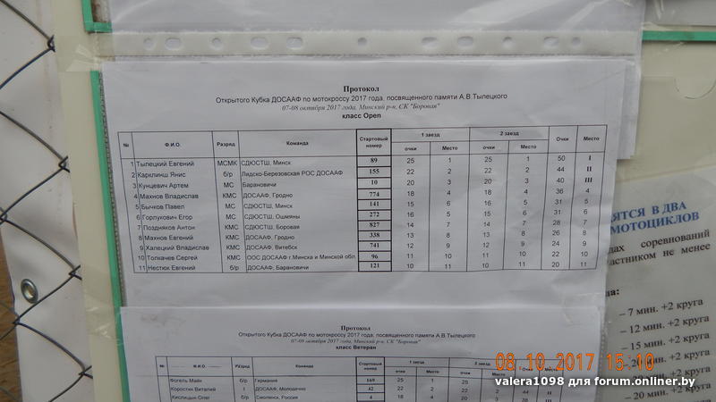 09.20.– 10.45 – официальная тренировка в классах 50 см3; 65 см3; 85 см , 125 см3, “Open”. “ Open B”.