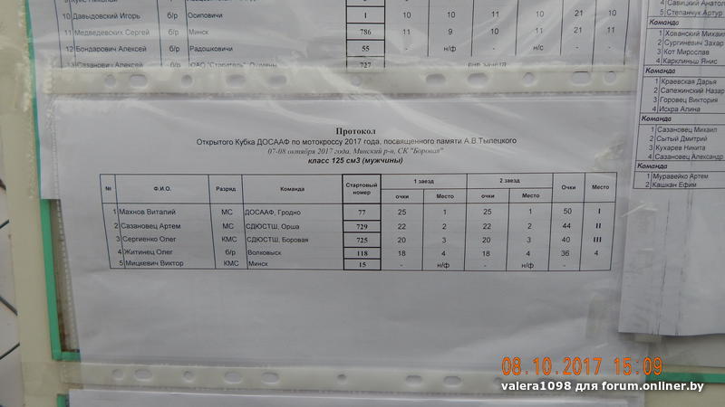 07.10.2017 суббота, заезды в классах: 50 см3, 65 см3, 85 см3, Национал, 125 см3 (Юноши), и «Начинающий».