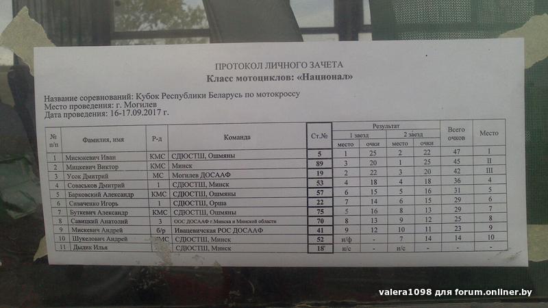 Вчерашние результаты заездов на Кубке Республики Беларусь по мотокроссу в Могилеве: