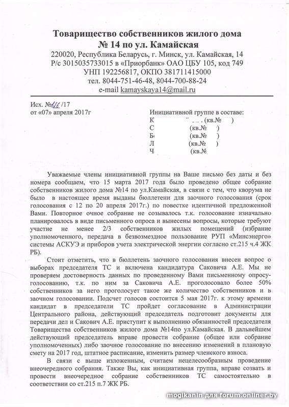 Товарищество собственников жилого дома №14 ул. Камайская.
