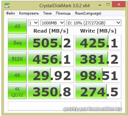 Какая то скорость в 4к мелкая всего 29 метров у тебя.... До включения моментум кэша у меня была больше напорядок....Что то у тебя не то походу... Кстати, а почему пишет у тебя 272гига? Вроде же 232гига.. У меня BX100