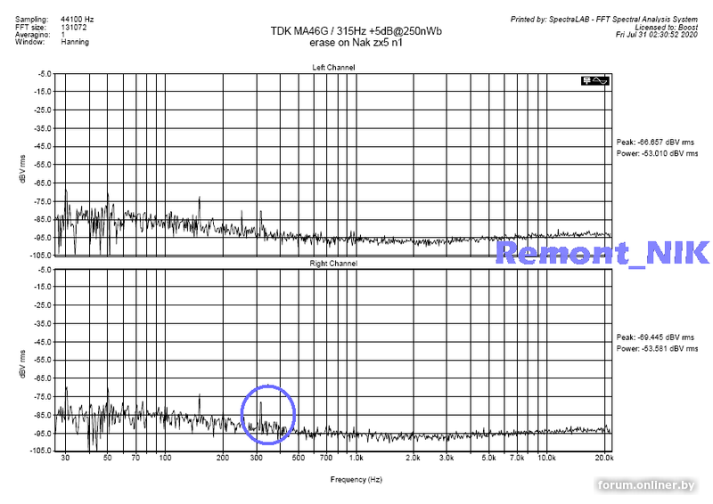 записал на него тестовые сигналы (АЧХ -20/0VU/ 0dB DIN MOL315/SOL10k)
