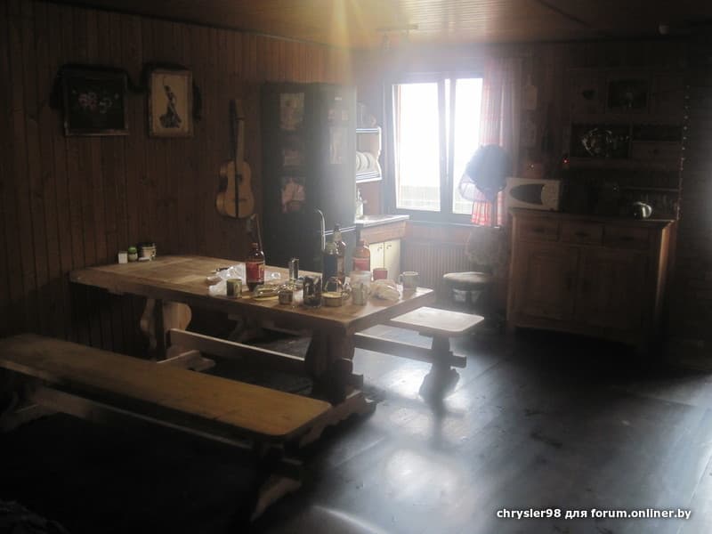 Комната отдыха расположена на втором этаже бани, по размеру всей постройки бани. В комнате деревянный стол со скамьями, холодильник и все кухонные принадлежности, небольшой музей раритетов, холодильник, мойка, очень удобные диваны, выход на балкон, где можно дополнительно охладиться.