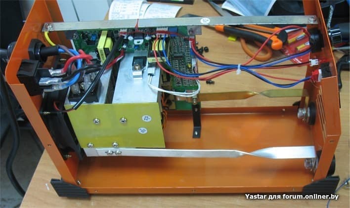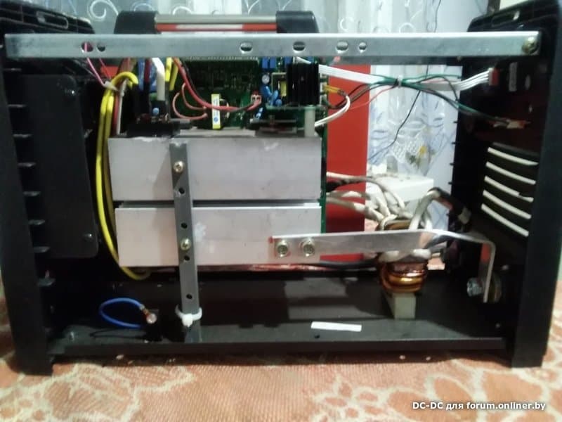 Мощные транзисторы, установленные непосредственно на массивные радиаторы, входной фильтр 4х680 мФ, тщательно защищённые от воздействия влаги места, где бегает выпрямленное сетевое напряжение, качественная защита от механических воздействий, выходной транс на сдвоенном кольце, что позволяет загнать рабочую частоту в оптимальный для IGBT диапазон - всего этого в этом аппарате Вы не увидите, не тот ценовой диапазон.