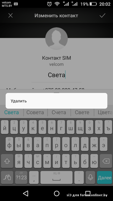 есть только "Удалить" или контакты надо сначала переписать на тело или привязывать в облако ....