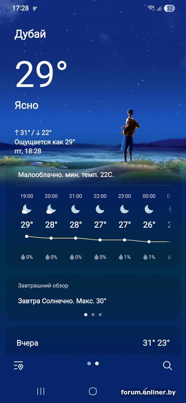 Я смотрю в родном приложении Погода от Samsung + в приложении Погода Live (Погода Live для Apple). Везде одинаково