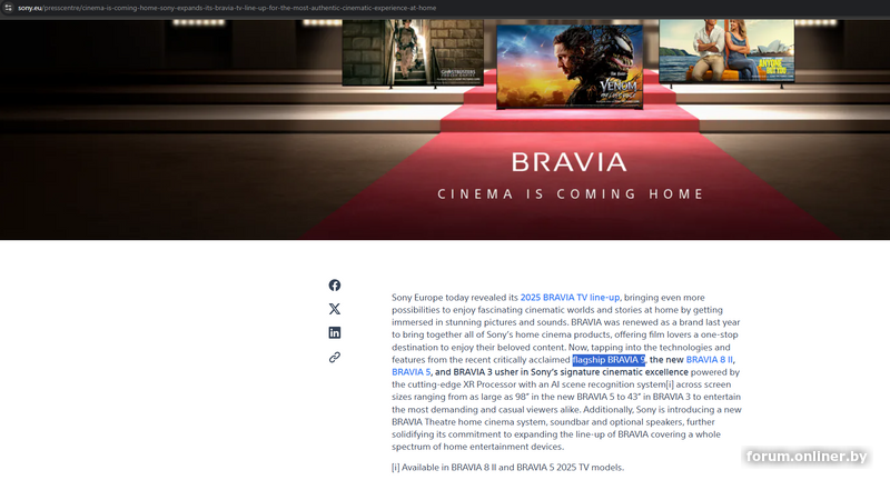 Заходишь на офф сайт сони и читаешь текстовый пресрелиз: "Now, tapping into the technologies and features from the recent critically acclaimed flagship BRAVIA 9, the new BRAVIA 8 II, BRAVIA 5, and BRAVIA 3 usher in Sony’s signature cinematic excellence powered by the cutting-edge XR Processor"