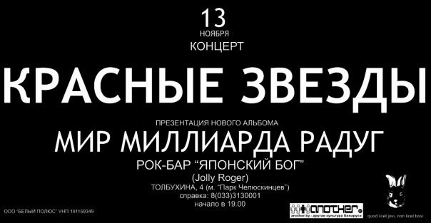Третий по счету после своего возвращения на сцену альбом КРАСНЫЕ ЗВЕЗДЫ презентуют в родном Минске.