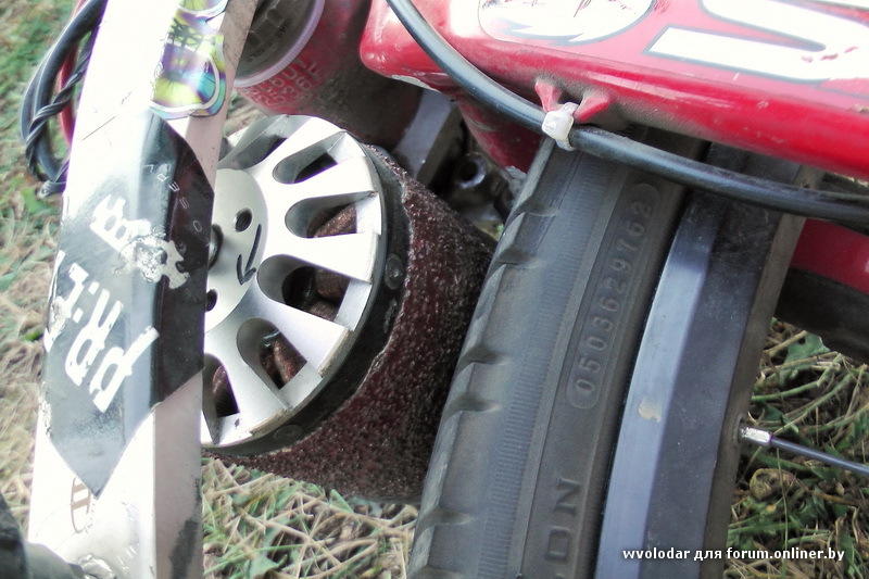 Электрокомплект обошелся в 800 баксов из них 400 баксов аккум. Мотор-колесо (ось подточена под передние дропауты) привезли сразу в сборе с ободом 28 дюймов. Для усиления дропаутов под заказ сделали детальку.