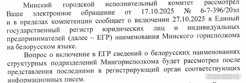 В ответе заявителю, данном горисполкомом 18.05.2024, сказано следующее: