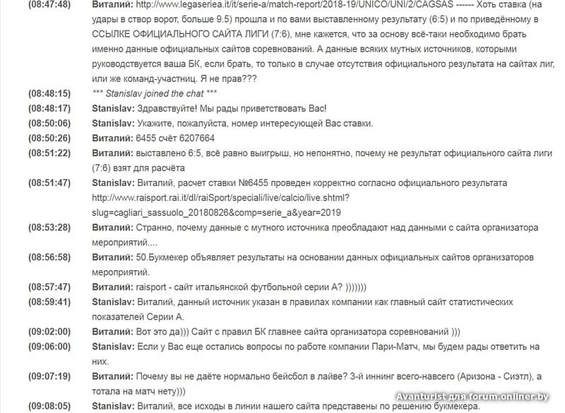 Ладно, когда ставка сыграла так или иначе. А вот если бы их мутный ресурс написал, например, 5:4 (9, меньше 9.5), а не 7:6, как по данным итальянской серии А, то.... проигрыш, и нигде бы ничего не доказал. Правила противоречивые, поэтому НЕ советую играть на Париматче на серьёзные суммы...