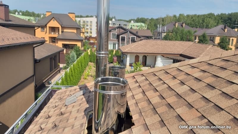 Установлен 11-ти метровый дымоход.Подключены: котел отопительный, печь для готовки, чугунная печь.
