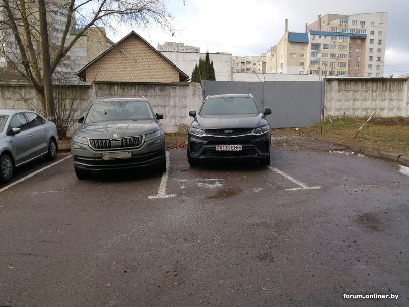 Так а чего шкоде номера замазали? Она тоже так же криво стоит, учитывая что ей никто не мешал парковаться. Ведь уедет джили, из за шкоды станут точно так же как и на джили.