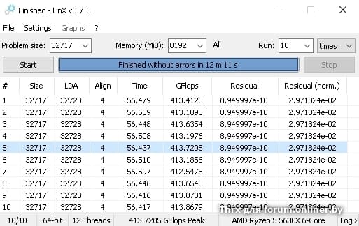 поэтому установи problem size хотя бы на 36000 и выполни 15 прогонов, этого будет достаточно