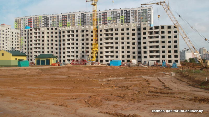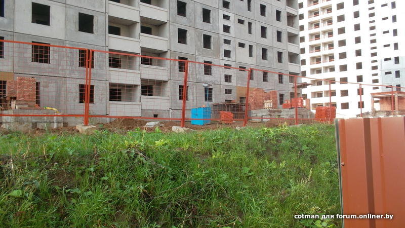 Были сегодня на стройке , примерно 9:30 по солнцу. Автобусная остановка рядышком. Швы на доме кривенькие. Стройка замерла, раньше неделя - этаж.