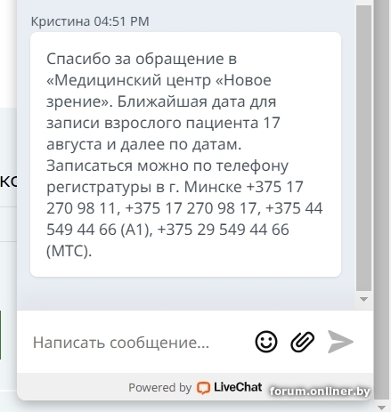 6. Новое зрение медицинский центр (г. Минск, и в областных филиалах) - на август 2023 все клиники закрыты