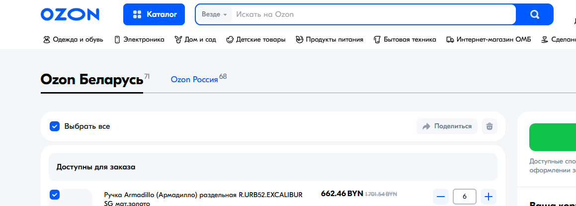 Они есть если выбран пункт выдачи где то в Беларуси. Если в РФ то будет одна корзина.
