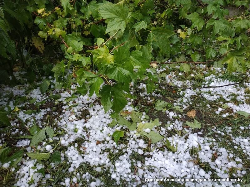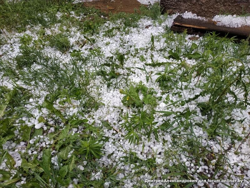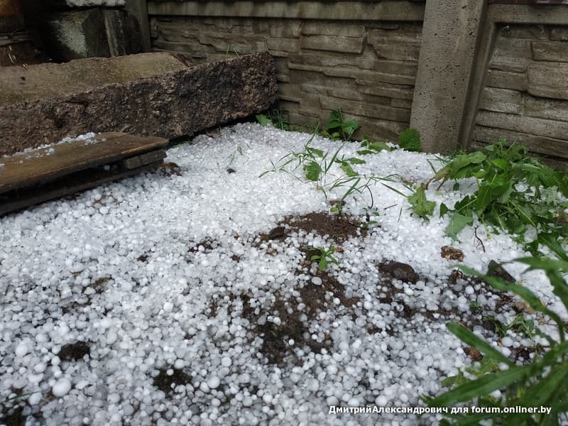 Собственно вот так, днем без осадков +31, ближе к 17 часам началось. Появились тучи, поднялся сильный ветер и температура резко упала до 12 Жаль весь огород, мало что выжило. Машина соседа - решето. Даже лобовое стекло побило.