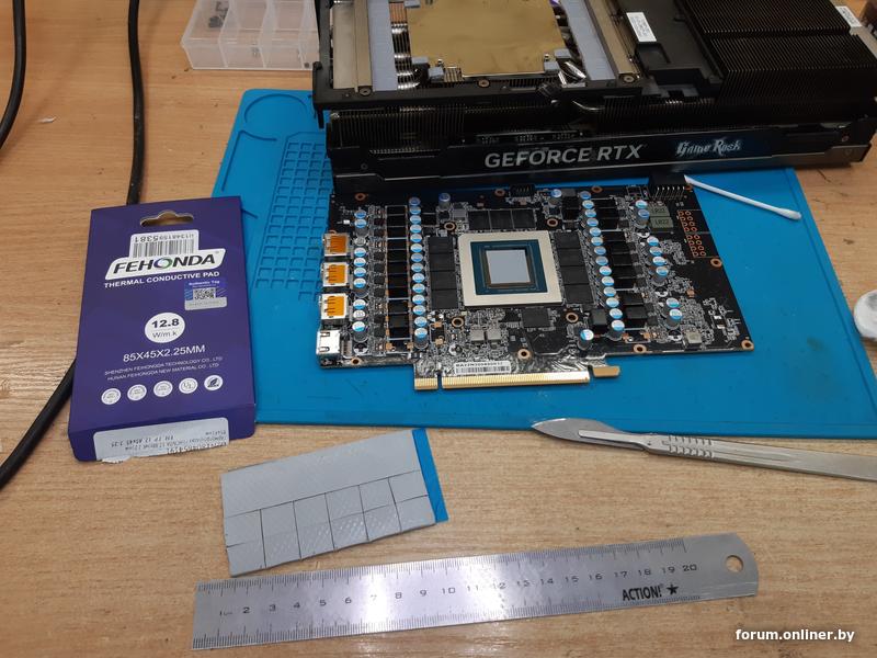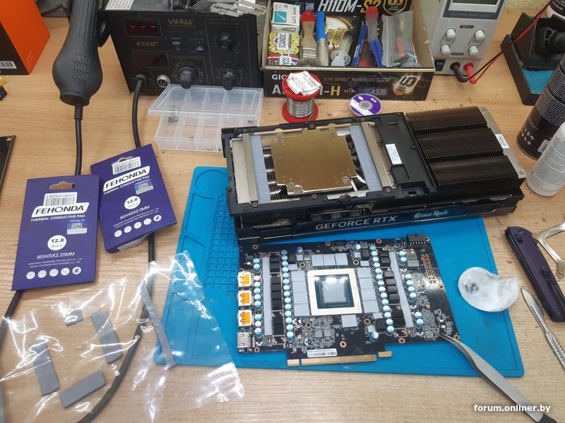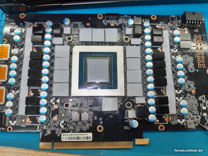 Сам по себе этот обильно выделяющийся силикон из термопрокладок не опасен - ток не проводит, коррозии не вызывает. Но он просачивается через переходные отверстия в текстолите и просто стекает под банки памяти, вызывая обильное налипание пыли. И вот уже болото из такой смеси очень даже может влиять на стабильность карты. Эти сопли вперемешку с пылью под чипами могут образовывать между шарами паразитные емкости, которые и вызовут нестабильную работу GDDR6(X), которая функционирует на сумасшедших частотах и любые помехи в сигналах могут мешать правильно их передавать/принимать/интерпретировать. Про "заботливо наваленную черпаком" пасту с конвейера даже говорить уже устал.