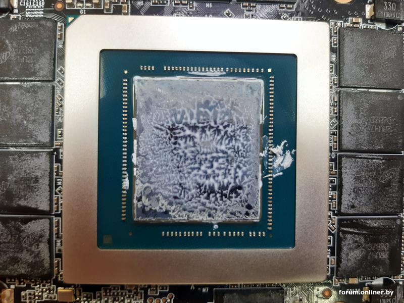 Конечно же и в таком виде наверняка доработали бы до конца гарантии, пусть троттля и перегреваясь. Но насколько сокращается ресурс кристалла из-за таких вот локальных перегревов за пределами гарантийного срока я постоянно вижу по артефачащим GPU, у которых компаунд вокруг чипа заметно темнее по периметру этих проплешин от потерявшей свои свойства пасты. Карты работали в таком виде, троттлили и снижали среднюю температуру и частоты, но эти голые участки неизменно страдали от локального перегрева, в конце концов приводя к частичной неработоспособности GPU.